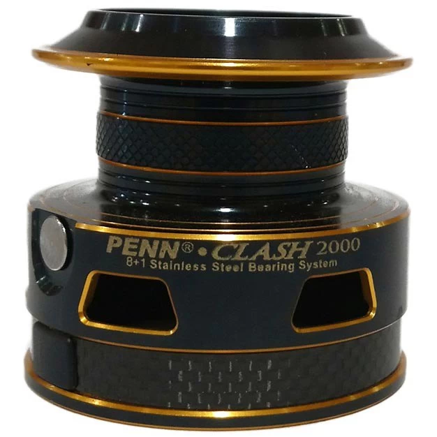 De PENN® Clash biedt alles wat men zou verwachten van een legendarische visgerei-fabricage zoals PENN. Van binnen naar buiten begint de tandwieltrein van onze Dura Gear-technologie, die een duurzame en langdurige uitrusting biedt. 9 afgedichte lagers houden alles in lijn en bewegen vrij terwijl een Full Metal Body de torsie elimineert die wordt veroorzaakt door een hoge weerstand. Andere kenmerken zijn een dikke aluminium beugeldraad, langzaam oscillatiesysteem voor uitstekend lijnbeheer, lijncapaciteitsringen en een gevlochten gereed spoel.