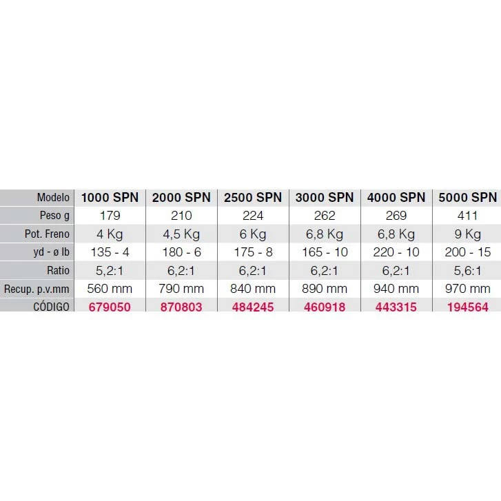 | Maat | 1000 Black, 2000 Black, 2500 Black, 3000 Black, 4000 Black |
