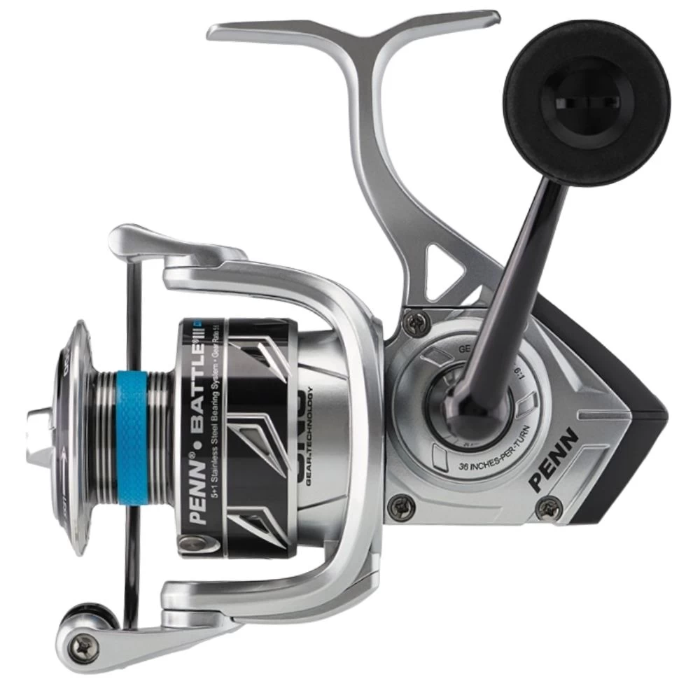 Penn Battle III DX Spinning Reels are built tough to withstand whatever the saltwater angler puts these reels through. The Battle III DX reels are more powerful than the previous Battle III spinning reels. Brass main gears are in every size along with an improved HT-100 drag system. Transfer more power through the gears to your big catch on the other end of the line with oversized EVA handle knobs.
