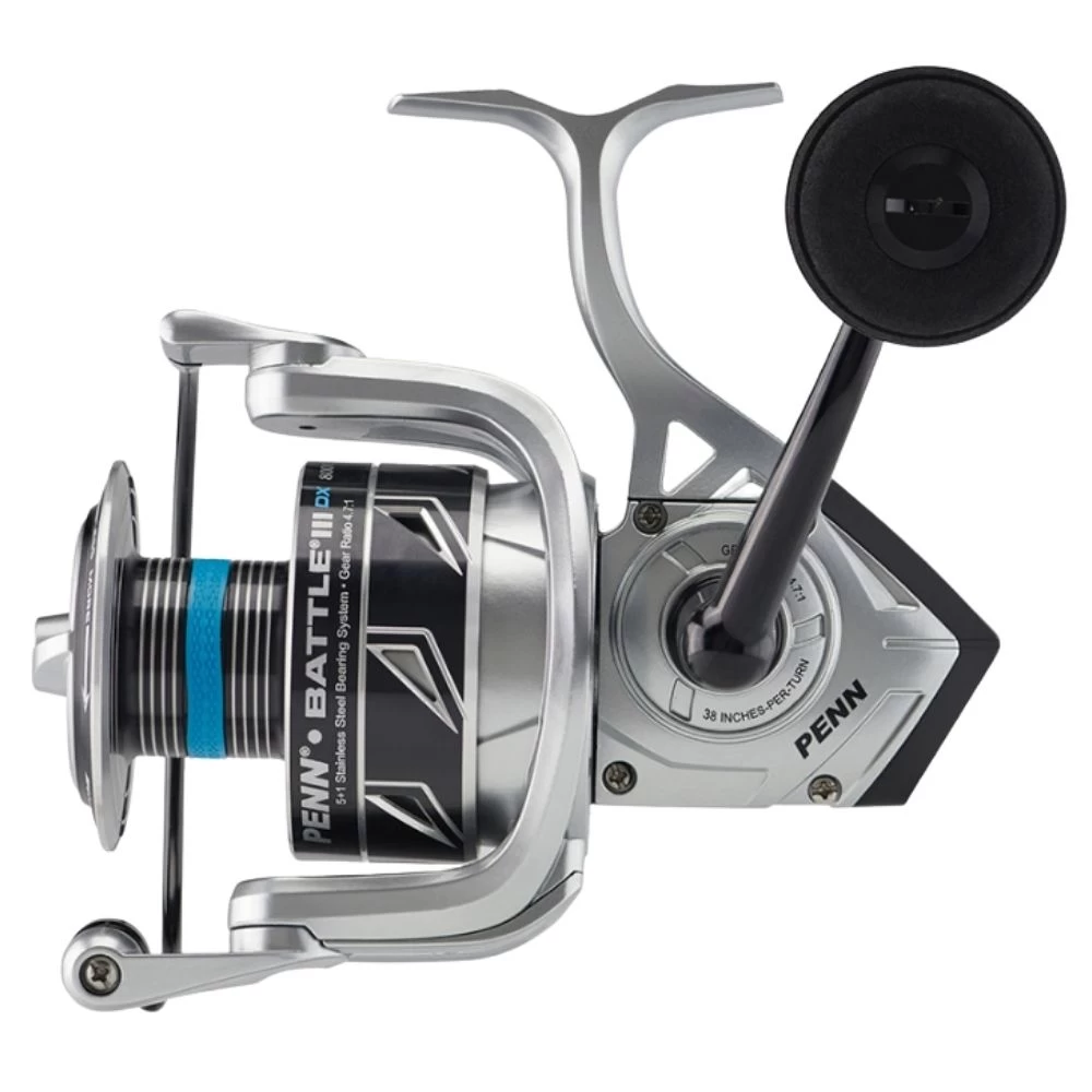 Penn Battle III DX Spinning Reels are built tough to withstand whatever the saltwater angler puts these reels through. The Battle III DX reels are more powerful than the previous Battle III spinning reels. Brass main gears are in every size along with an improved HT-100 drag system. Transfer more power through the gears to your big catch on the other end of the line with oversized EVA handle knobs.