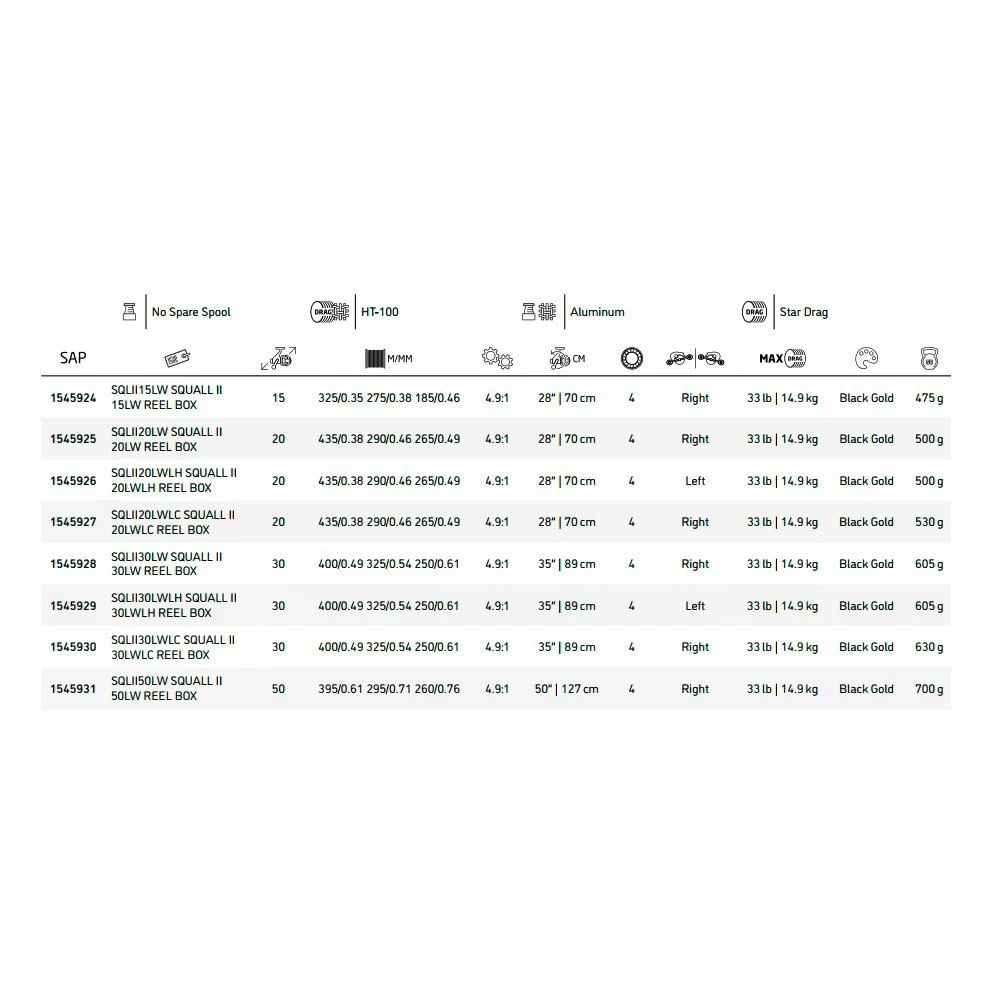 Verkrijgbaar in 4 maten van 15 tot 50, inclusief key line counter-modellen, de PENN Squall II Level Wind heeft een model voor iedereen.